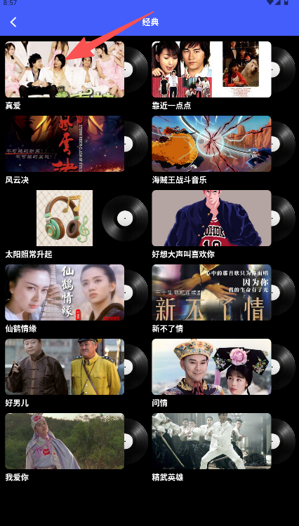 2、在经典曲库页面选择目标歌曲如“真爱”,点击进入下一步。