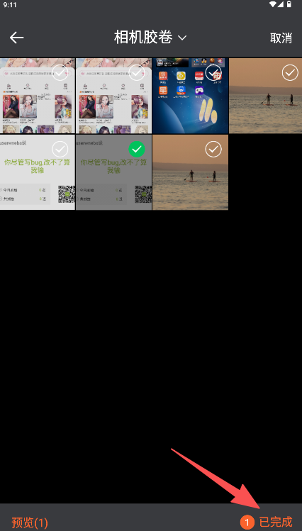 2、在选择包含文字的图片,点击“已完成”确认选择。