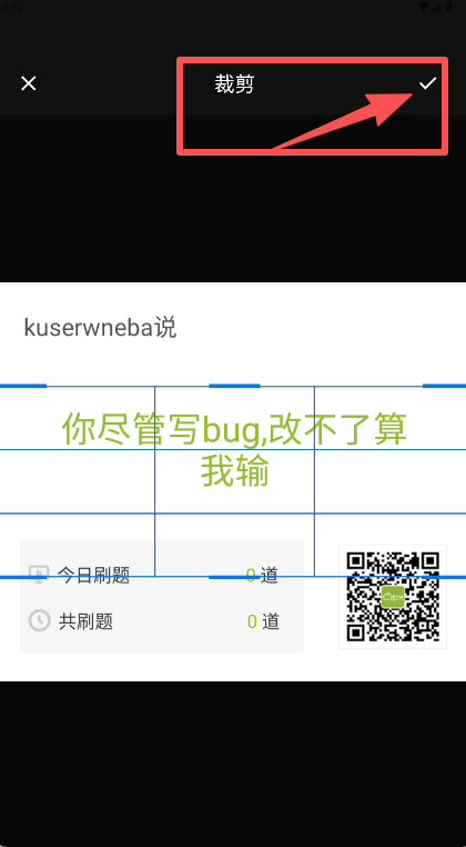 3、进入识别结果编辑页,使用顶部“裁剪”工具调整内容范围后,点击√图标完成文字提取。