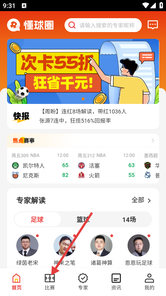 2、在主界面中,点击底部【比赛】按钮,进入比赛板块。
