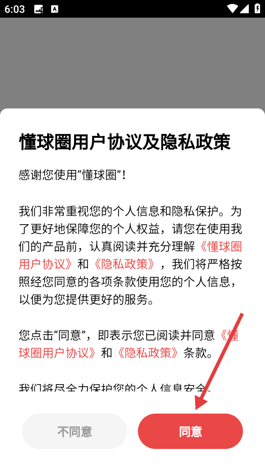 1、在用户协议及隐私政策弹窗中,点击【同意】按钮,进入软件主界面。