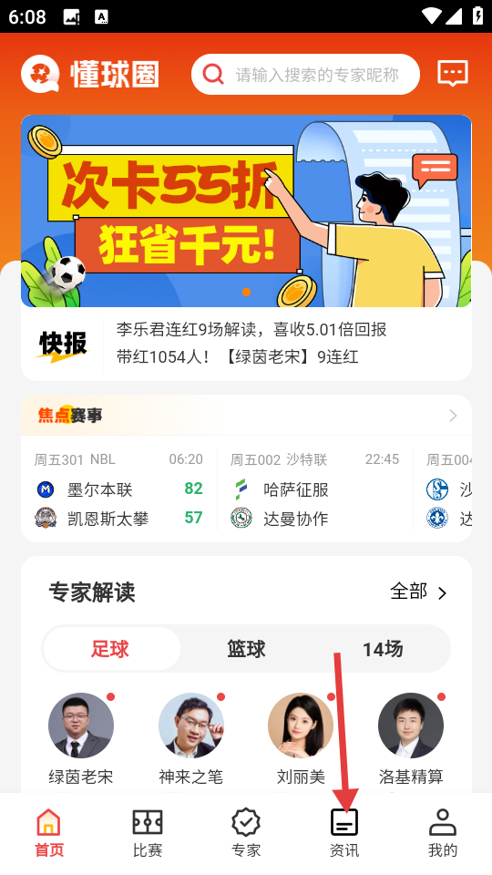 2、在主界面,点击底部【资讯】按钮,进入资讯板块。