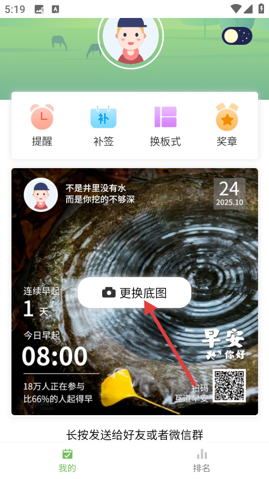 3、生成早安卡后点击【更换底图】按钮,进入底图选择页面。