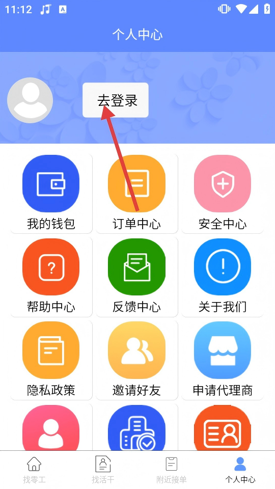 2、在个人中心页面点击【去登录】,进入登录页面。