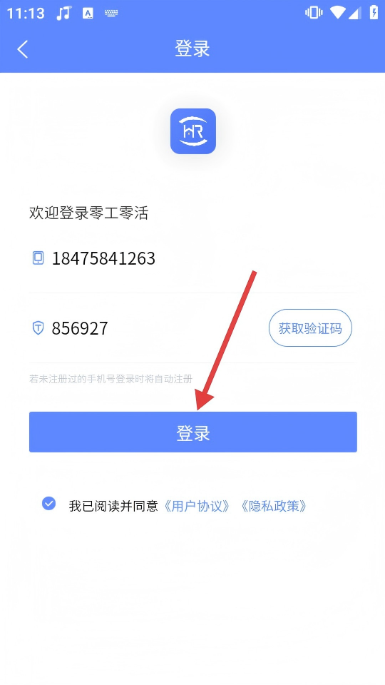 3、在登录页面输入手机号和验证码,勾选同意相关协议。