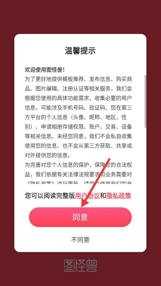 1、使用需阅读并同意用户协议和隐私政策,点击【同意】按钮即可进入软件。