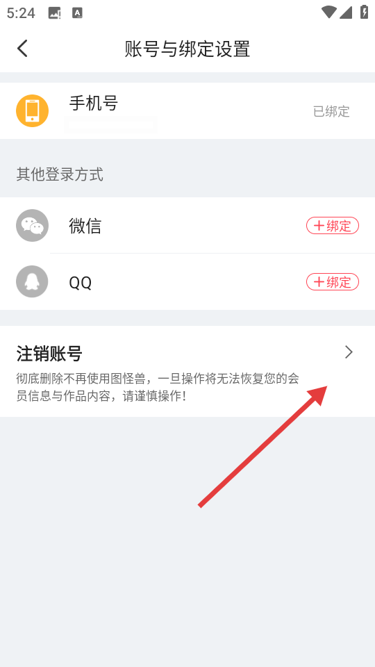 3、在账号与绑定设置页面,点击【注销账号】选项,可进入注销账户确认页面。