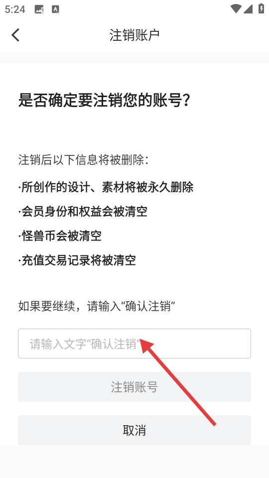 4、在注销账户页面,输入【确认注销】后可完成账号注销操作。