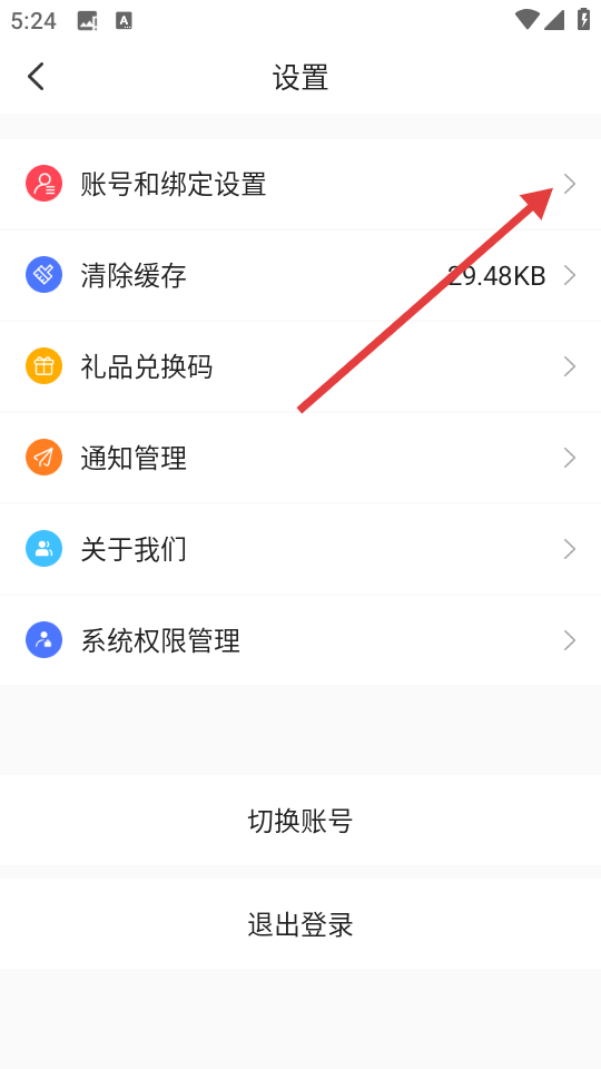 2、在设置页面,点击【账号和绑定设置】选项,可进入账号与绑定设置页面。