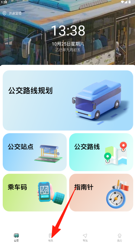 1、在首页底部导航栏点击“地铁”选项,切换至地铁查询模式。
