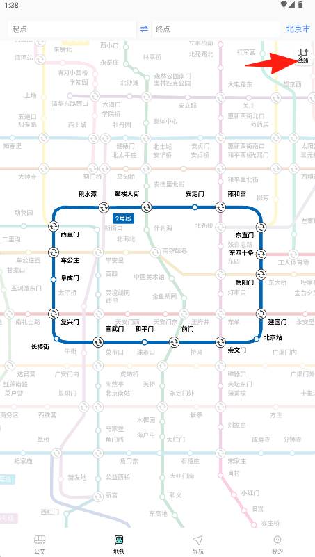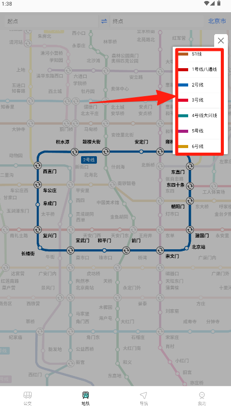 3、在地铁线路图界面可查看具体走向与站点,并利用图例识别不同线路。