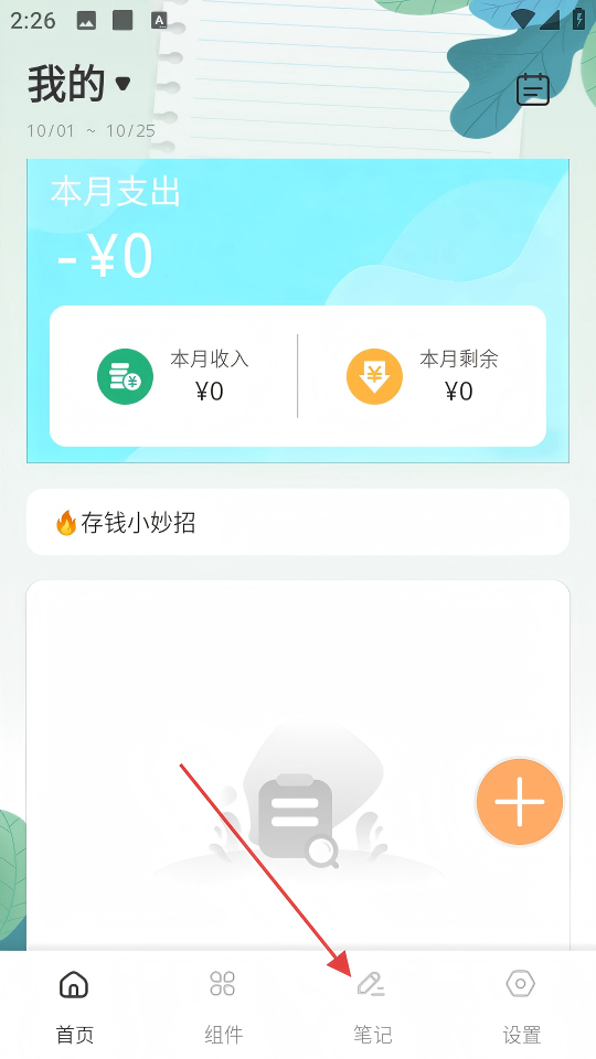 1、在软件界面点击底部【笔记】按钮,进入笔记页面。
