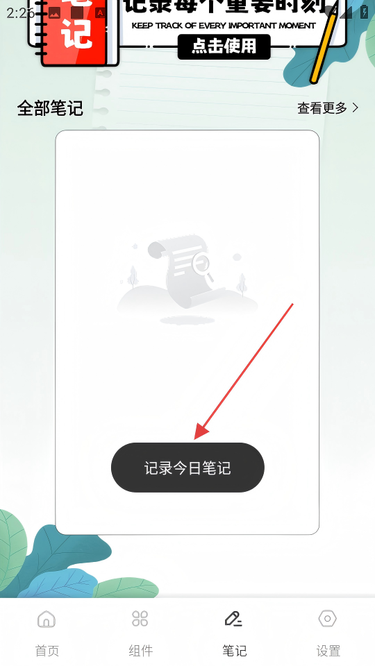 2、在笔记页面点击【记录今日笔记】按钮,进入新建笔记界面。