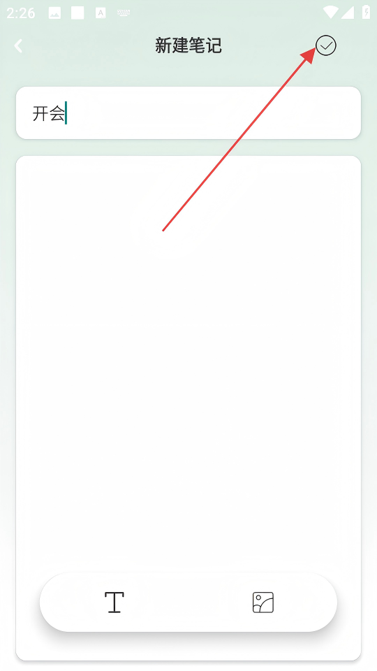 3、在新建笔记界面输入内容后,点击右上角对勾按钮,完成笔记保存操作。
