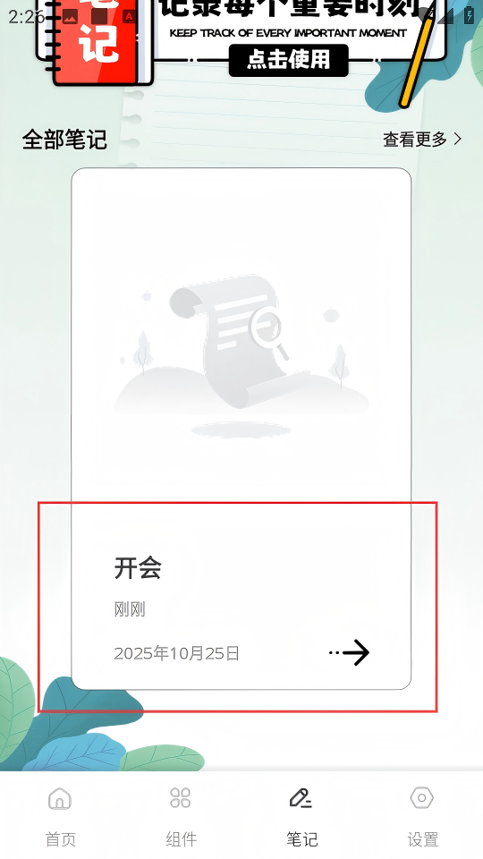 4、保存后返回笔记页面,可看到新增的笔记条目,即成功完成笔记创建流程。