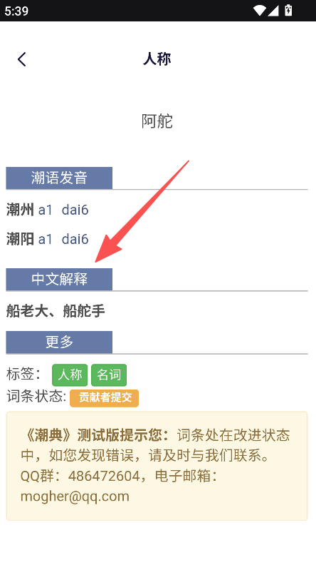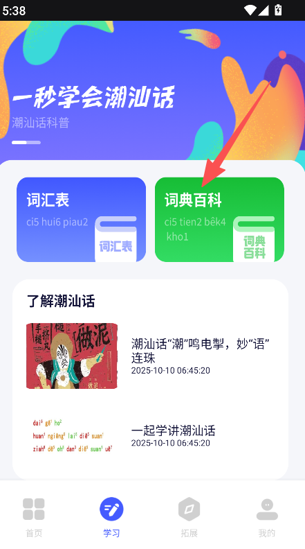 2、词条信息完备,每个词条配备潮语发音、中文解释等内容,让学习者清晰掌握词汇读音与含义。