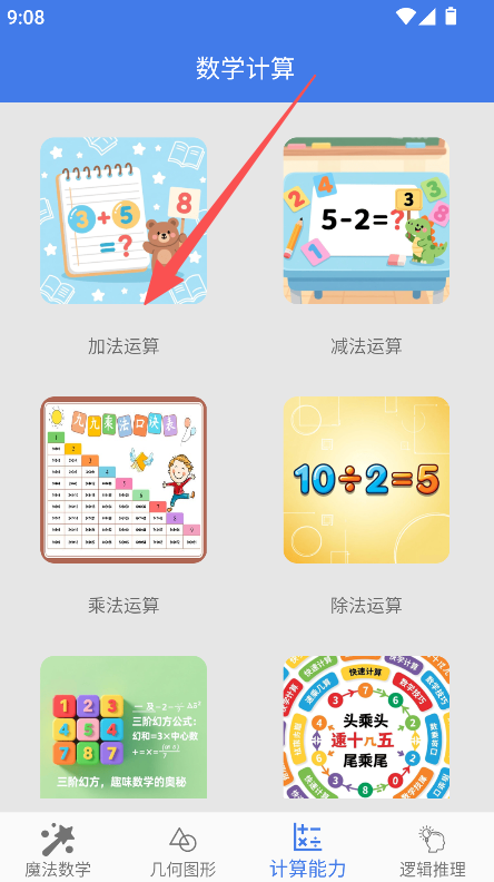 1、涵盖数学多板块学习,从加减乘除基础运算到几何图形、逻辑推理,还有三阶幻方等趣味内容。