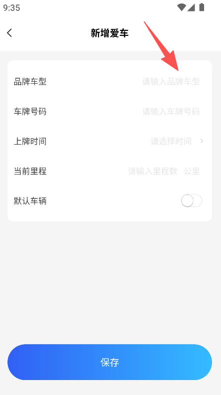 2、拥有爱车添加功能,可录入品牌车型、车牌号码、上牌时间等信息,车辆信息管理全面。