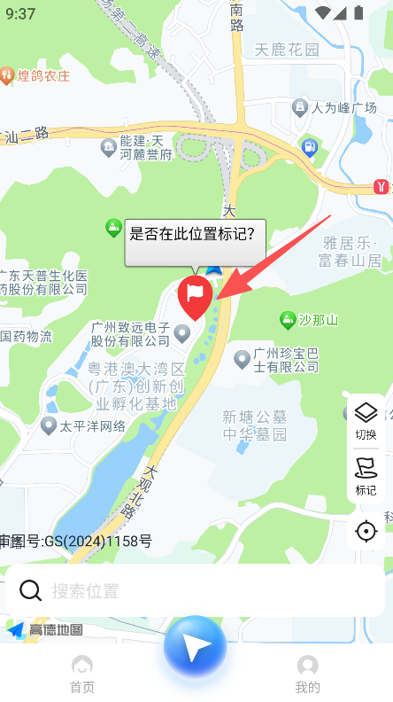 3、在地图页面,点击标记,选择位置即可完成标记。