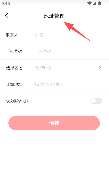 2、进入地址管理,填写联系人、手机号码、详细地址后保存。
