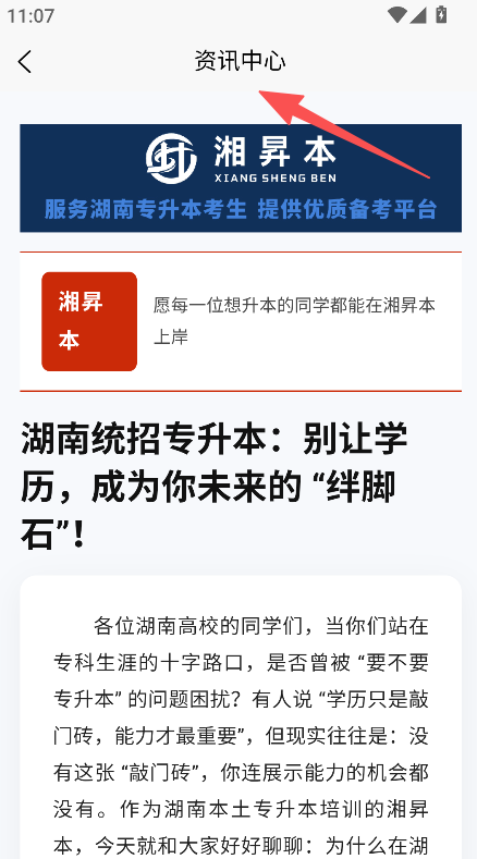 3、进入资讯中心,查看湖南专升本备考资讯。