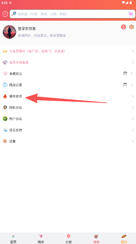 2、在个人中心页面浏览功能列表,找到并点击“猜你喜欢”选项。