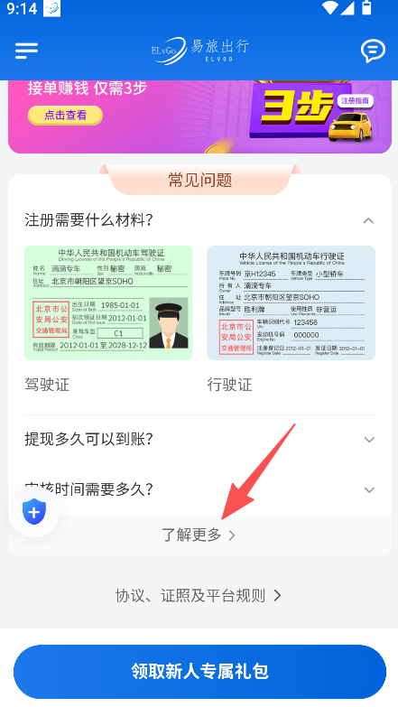 3、提供新人专属礼包领取功能,司机可领取新人福利,降低接单初期成本,提升司机在平台的接单积极性与获得感。