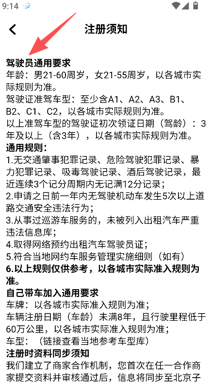 2、查看注册须知了解司机要求。