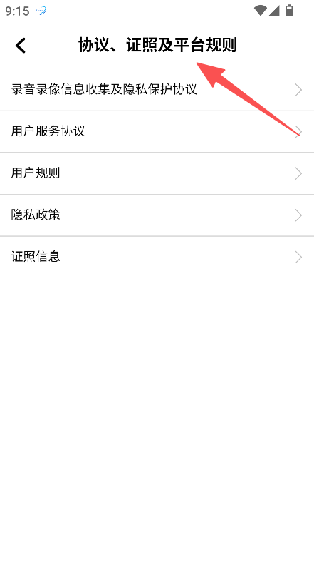 3、查看协议证照及平台规则。
