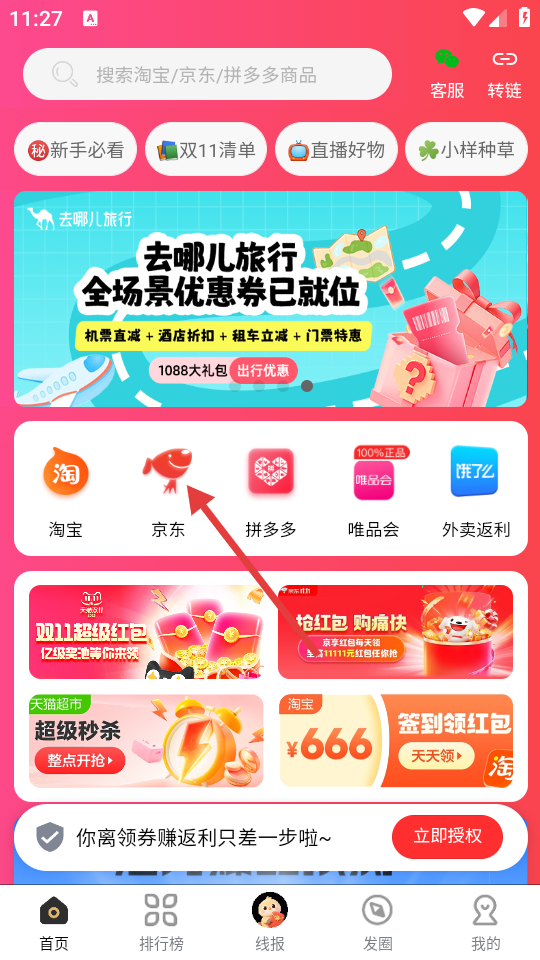 1、点击【京东】图标,进入京东返利商品列表页面。
