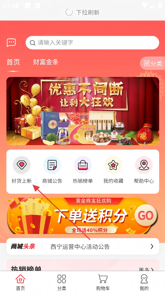 1、在软件首页点击【好货上新】,进入新品推荐页面。