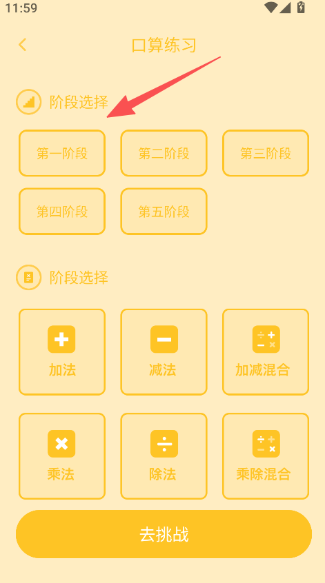 2、支持阶段选择功能,学习者可根据自身水平选择对应阶段,实现精准化口算提升。