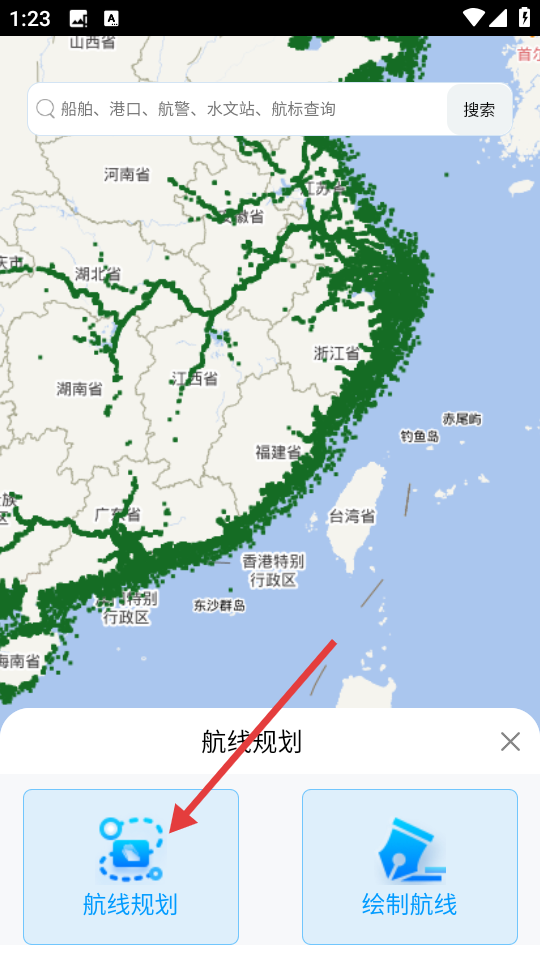 2、在主界面点击【航线规划】功能图标,展开航线规划选项。