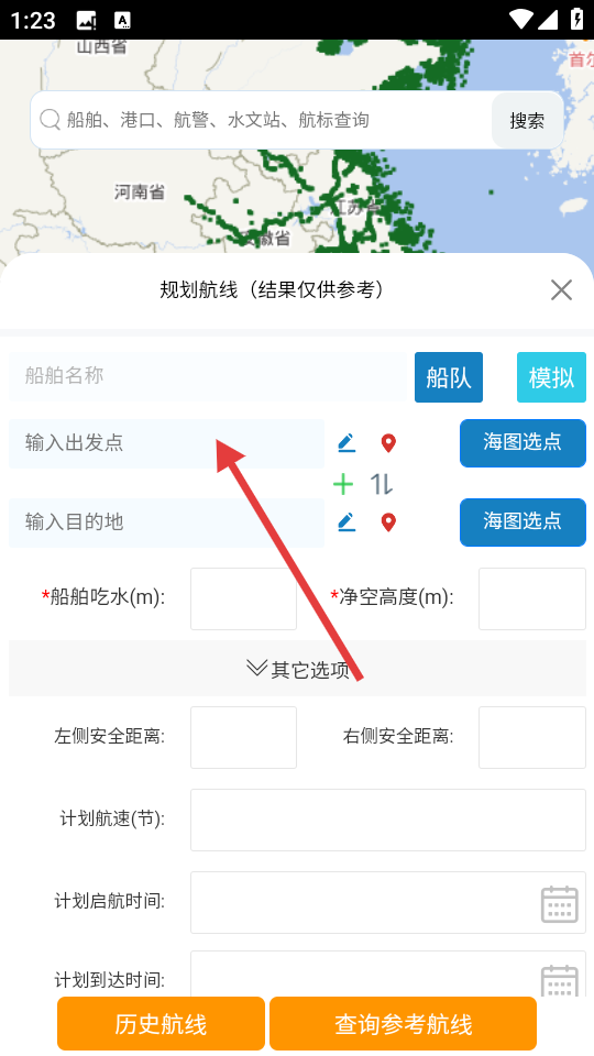4、在规划航线界面,输入出发点等信息,可进行航线规划操作。