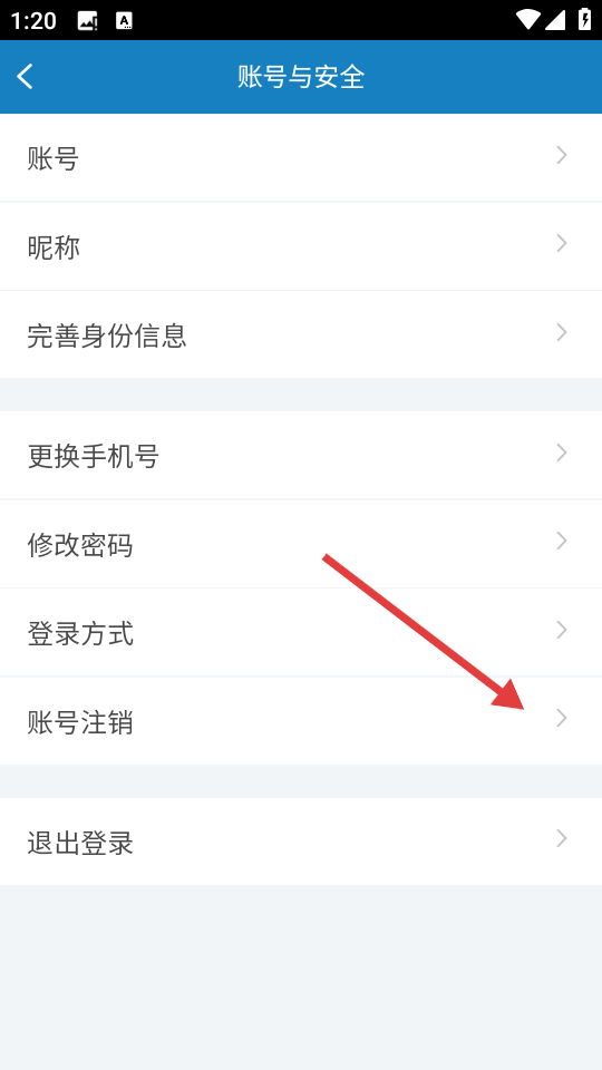3、在账号与安全页面,点击【账号注销】选项进入账号注销流程。