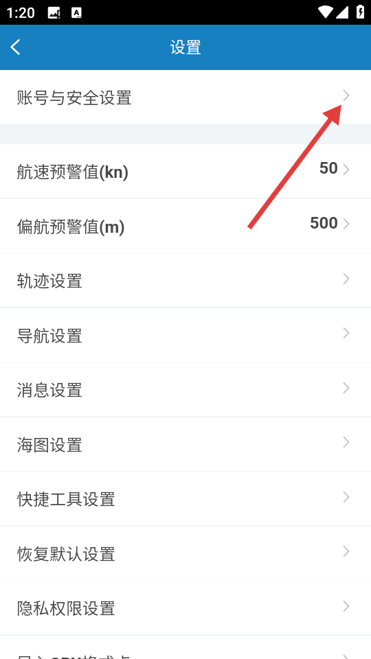 2、在设置界面,点击【账号与安全设置】选项进入账号安全页面。
