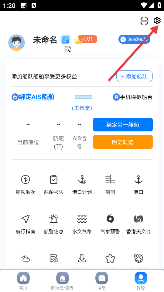 1、在“我的”页面,点击右上角设置图标进入设置界面。
