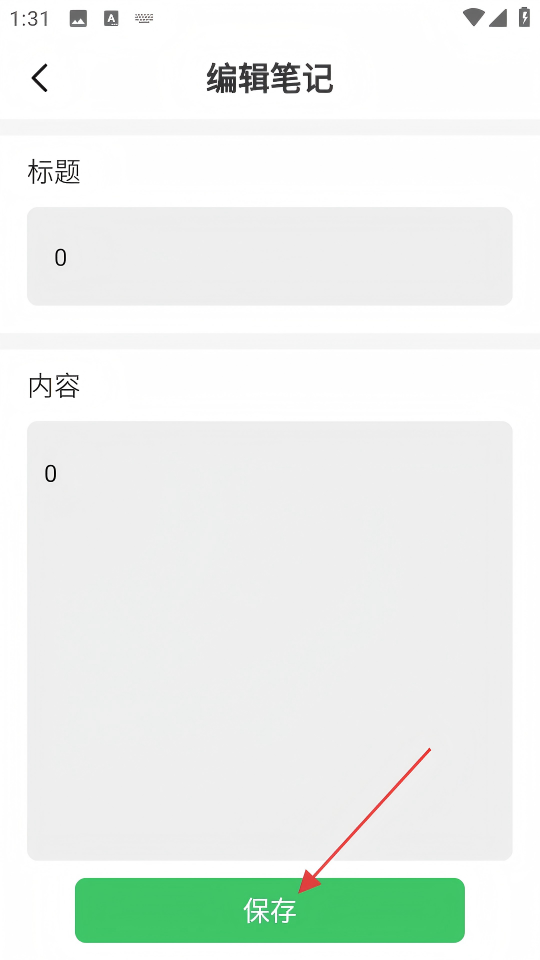 3、在编辑笔记页面输入标题和内容后,点击【保存】按钮。