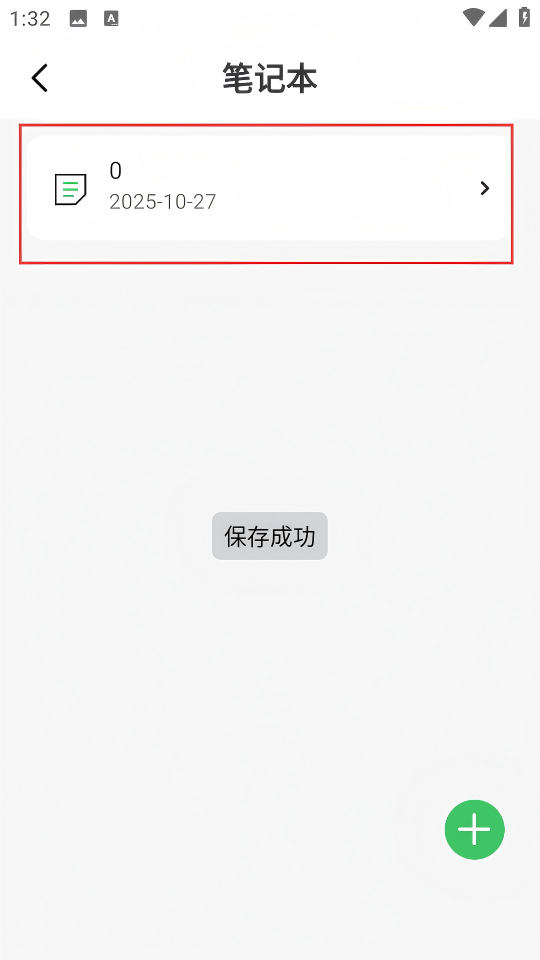 4、保存后返回笔记本页面,即可看到新建的笔记条目,完成笔记创建流程。