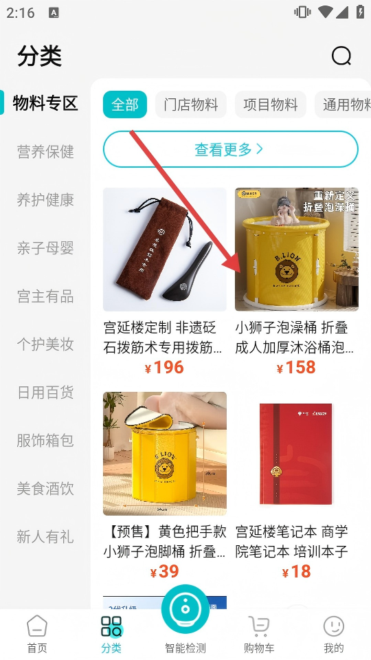 2、在分类页选择目标商品,进入商品详情页。