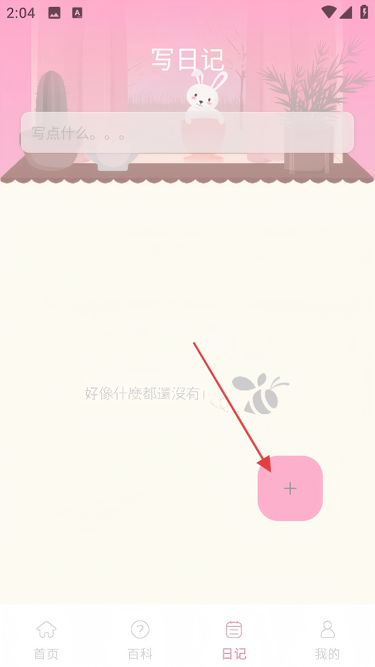 2、在日记页面点击右下角粉色加号按钮,进入写日记编辑页面。
