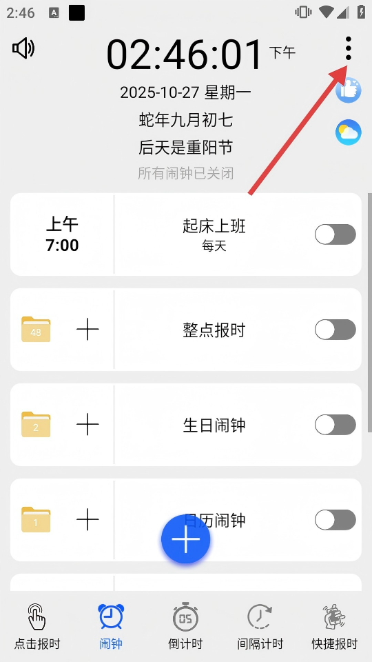 语音报时闹钟v12.1.0是一款提供多样化报时服务的实用工具,支持多种报时触发方式。用户可自定义报时内容,涵盖当前时刻、农历日期、大小月信息、24节气、阳历日期及星期等,满足不同场景下的时间信息需求。闹钟功能支持选择常规铃声或语音铃声,其中摇一摇、启动报时等操作简单,更适配老人及特殊人群使用习惯,帮助用户更便捷地获取时间信息。