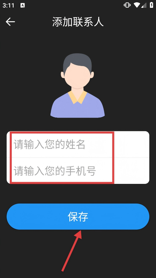 4、在添加联系人界面,输入【姓名】和【手机号】后,点击【保存】,即可完成联系人添加,方便后续通讯。