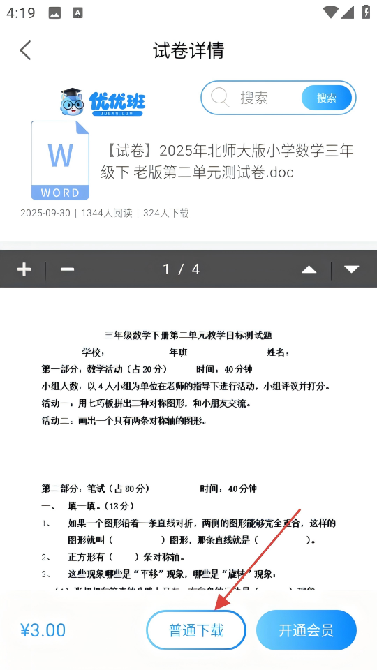 4、在试卷详情页面点击【普通下载】,即可获取该试卷文档,便于学习使用。