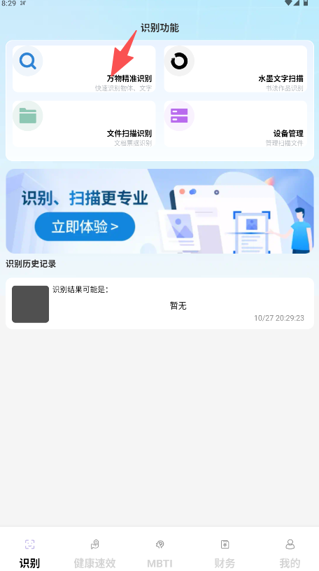 1、在软件首页“识别功能”区域点击“万物精准识别”进入多功能识别界面。