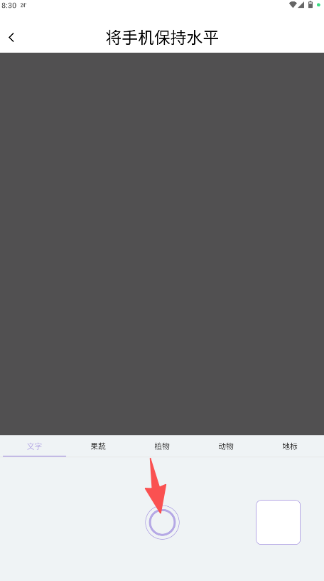 3、在拍摄界面将手机保持水平并对准目标点击底部圆形拍照即可完成识别。