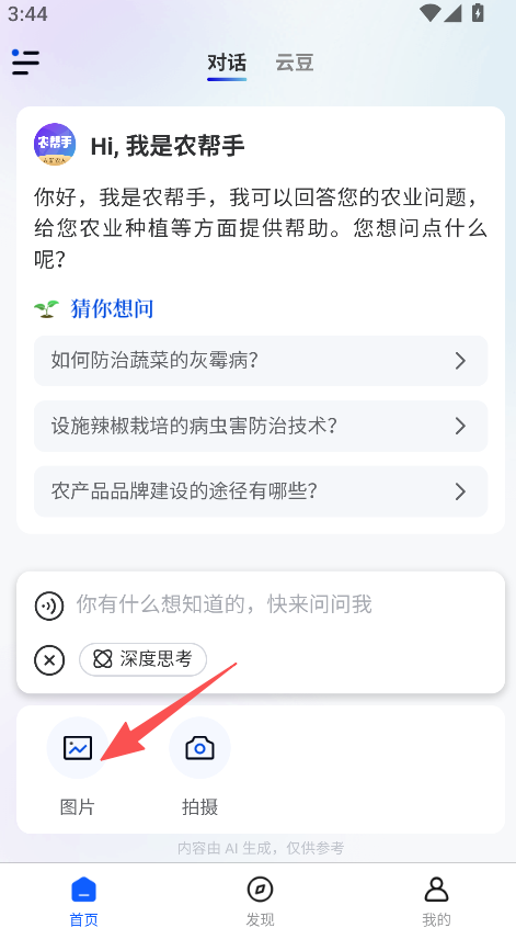 2、支持图片上传功能,通过图片辅助描述农业问题,问题传达更准确,解答更贴合实际。