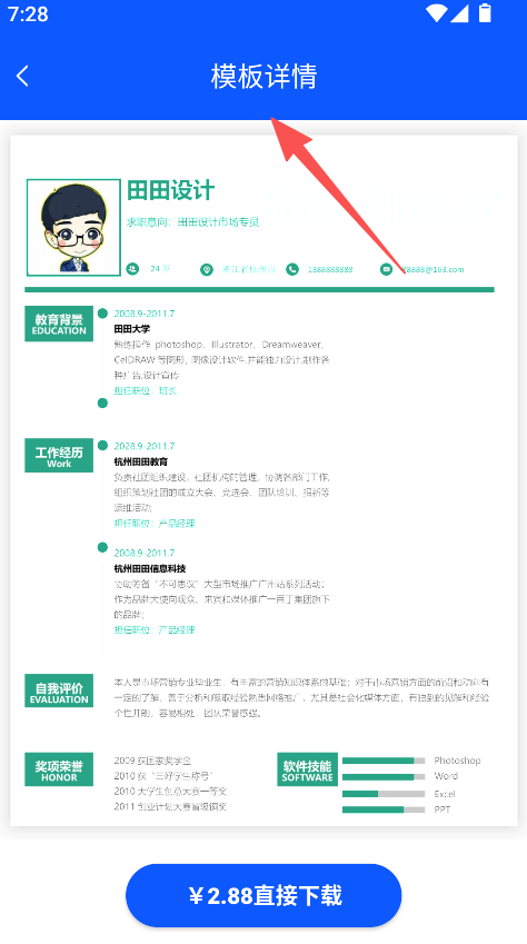 2、操作流程简便,从尺寸搜索到简历模板选择再到下载,步骤清晰,用户易上手,无使用门槛。
