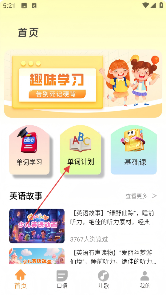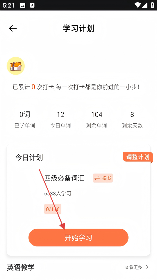 1、在首页点击【单词计划】选项,进入学习计划页面。