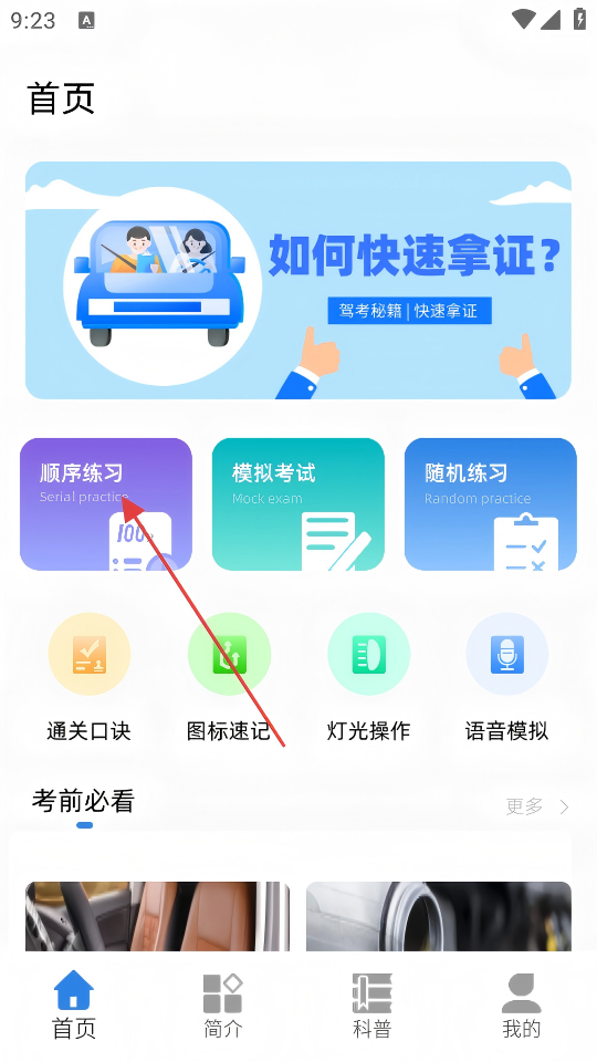 1、在首页点击【顺序练习】选项,进入顺序练习页面。